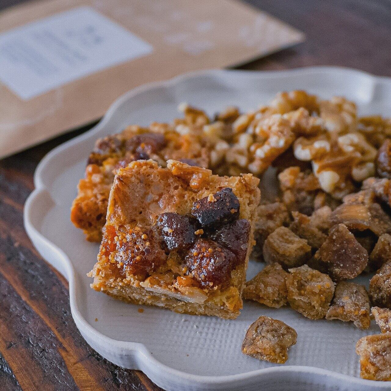 ブラウンシュガーを使用したショートブレッド生地の上に、ピーカンナッツ・くるみとメープルフィリングをのせて香ばしく焼き上げました。メープルの優しい甘みとバターのコク、そしてふんだんに使用したナッツのハーモニーをぜひお楽しみください。