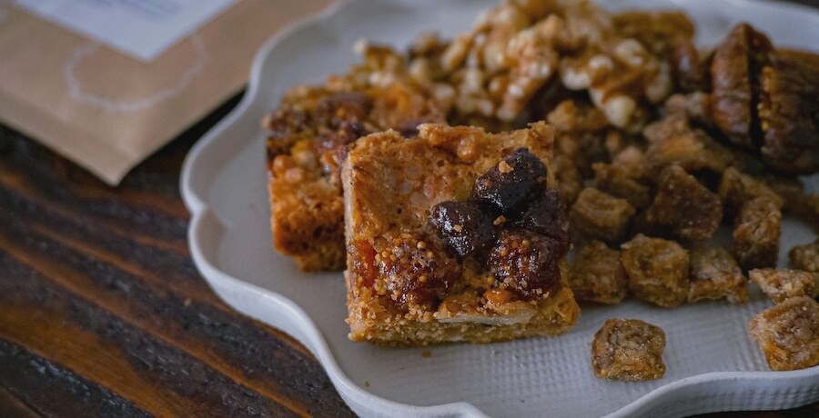 米粉(奈良県産)、バター、ブラウンシュガー(粗糖)、グラニュ糖(原料糖)、ドライイチジク(イチジク・米粉)、全卵、メープルシロップ、クルミ、アーモンドパウダー、オートミール、塩